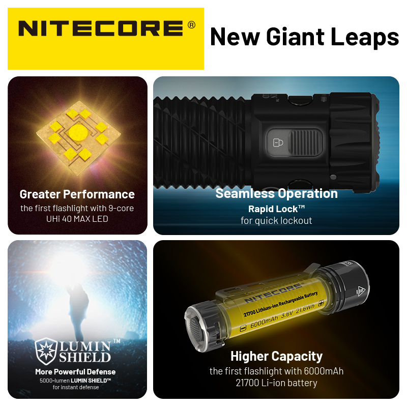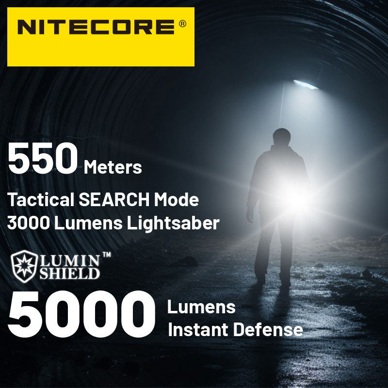 Keamanan itu nomor satu, kan? Makanya, NITECORE membekali senter ini dengan teknologi LUMIN SHIELD. Ini bukan fitur main-main, karena sekali aktif, senter akan langsung menyala pada tingkat kecerahan maksimal 5000 lumens! Siapa pun yang melihatnya, baik itu hewan buas atau oknum jahat, pasti akan kaget dan silau. Sebuah fitur pertahanan diri brilian yang ada di genggamanmu.